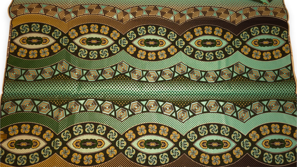 African Wax print fabric - Green Ancient Hex Wave - Special effect Brillant Platinum Edition