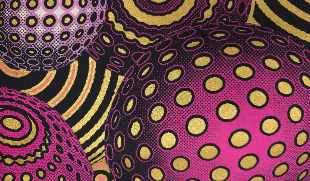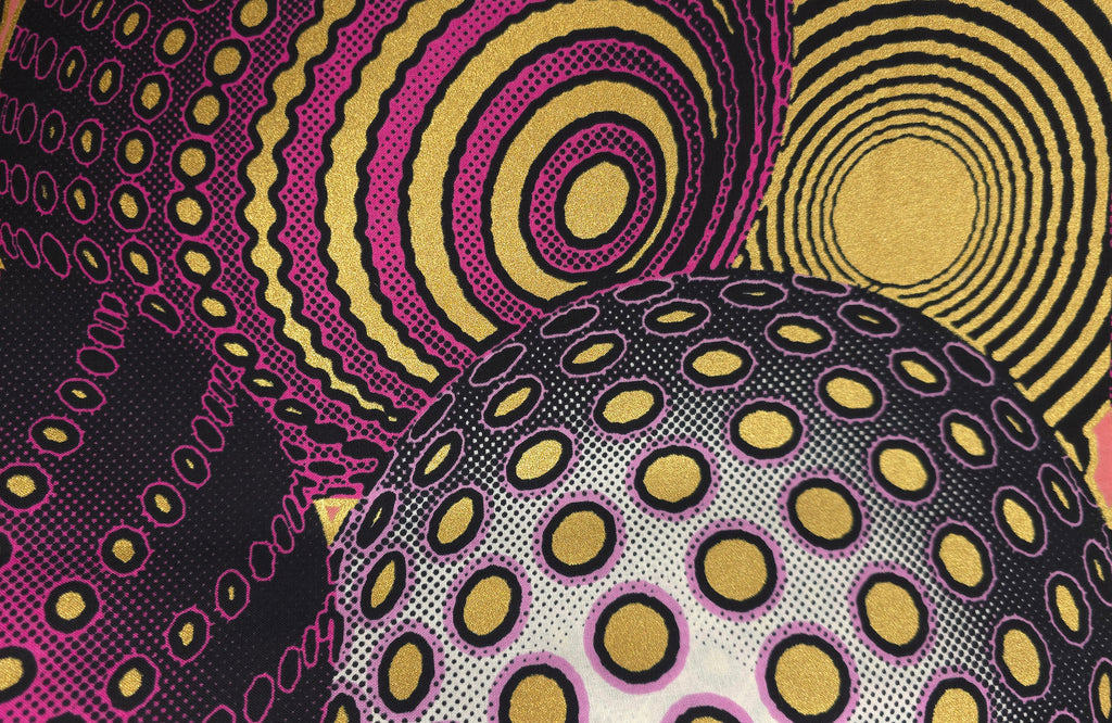 African Wax print fabric - Pink Gold Cosmic Orb Pattern - Special effect Brillant Platinum Edition