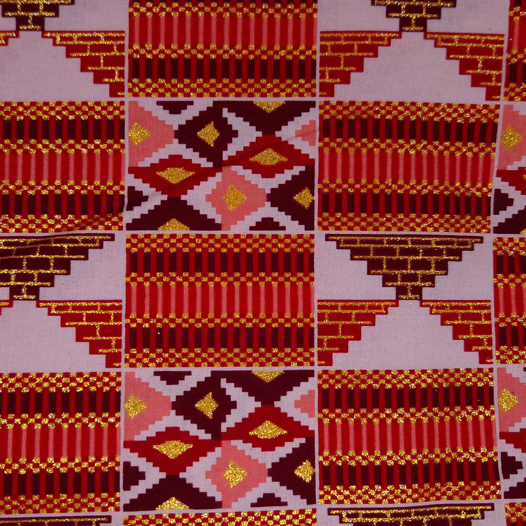 African print fabric - Exclusive Embellished Glitter effects 100% cotton - GL-4027 Red Gold Kente