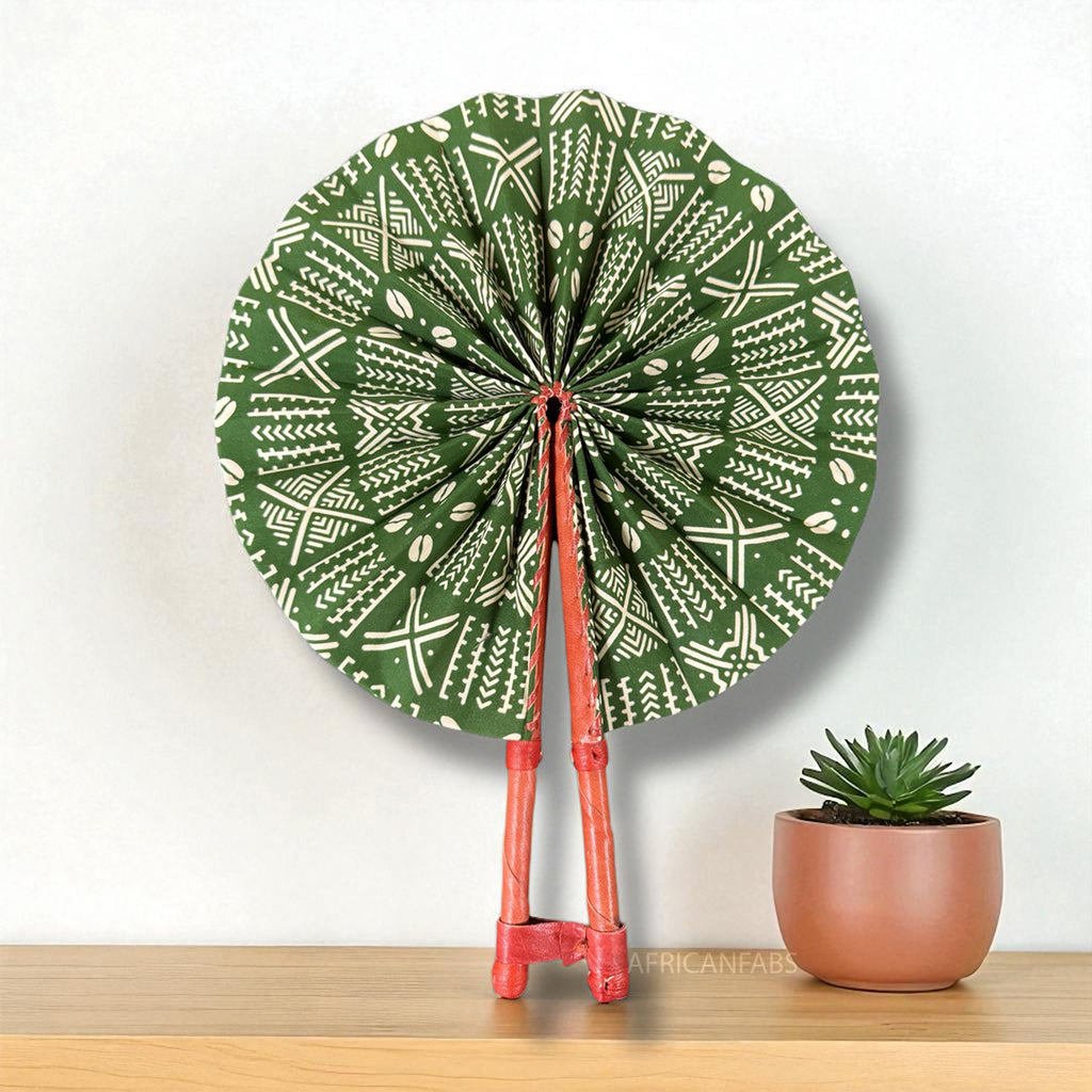 African Hand fan - Ankara print Hand fan - Friday - Green