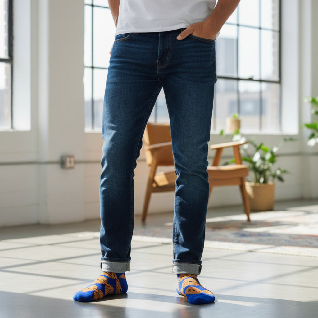African socks / Afro socks / African print socks - Blue Yellow Circles