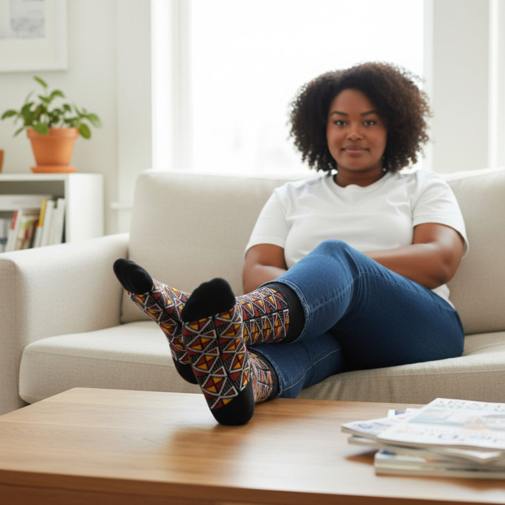 African socks / Afro socks / African print socks - Maroon Bogolan