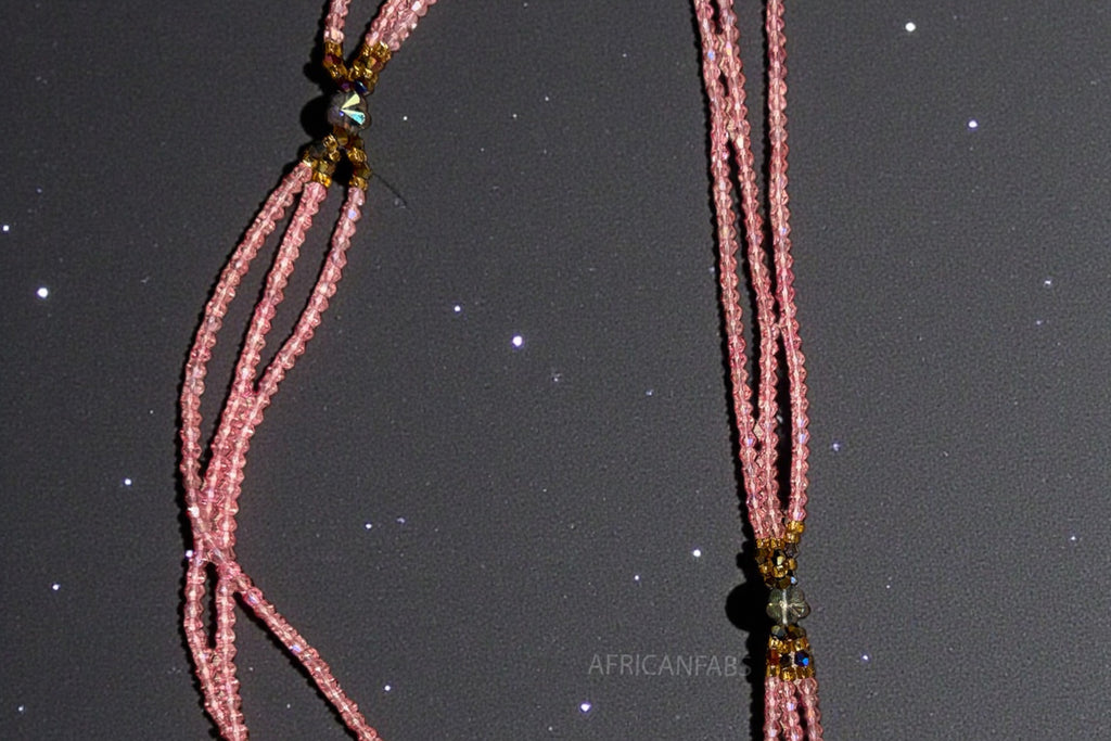 3 in 1 Waist Beads / African Hip Chain - Mami - Pink (Traditional non-elastic string)