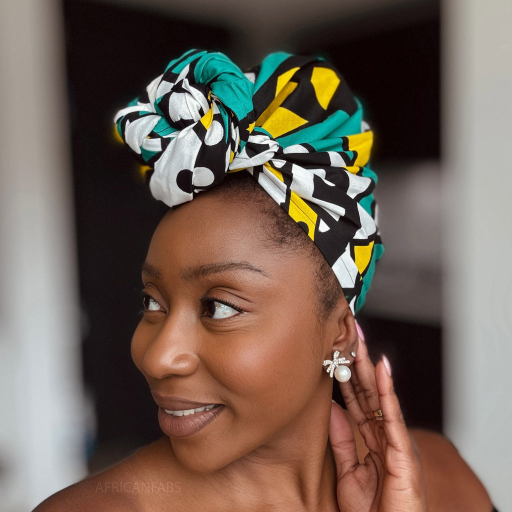 African headwrap - Turquoise Yellow Samakaka / Samacaca
