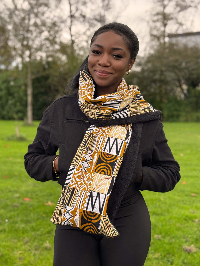 African print Winter scarf Unisex - Slim model - Sand Bogolan Mosaic